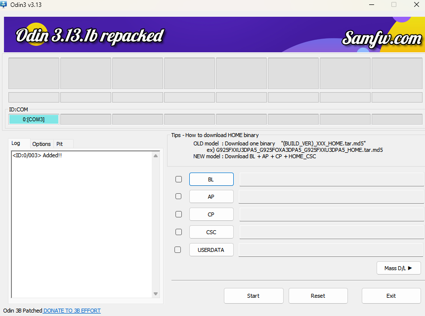 现在能看到Odin上,会有一个 com口 亮灯,证明手机已经连接成功,已准备好随时刷机。